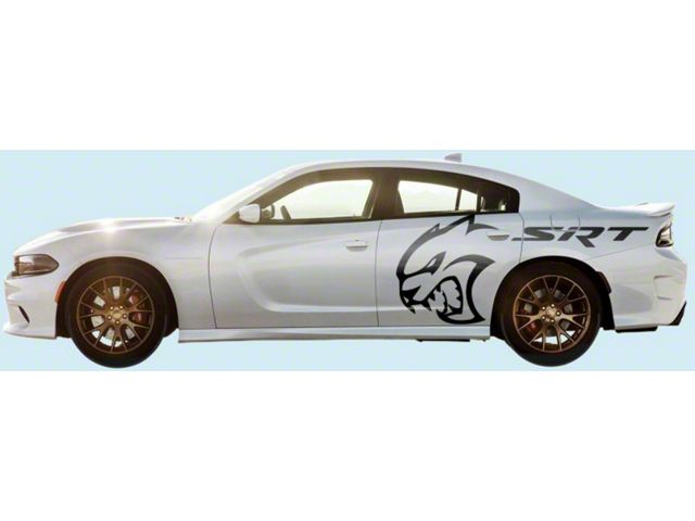 Application. This pair of Side Decals fits 2015-2023 Dodge Charger SRT Hellcat models. They offer a stylish and durable exterior enhancement, helping your vehicle stand out with a unique and bold design.