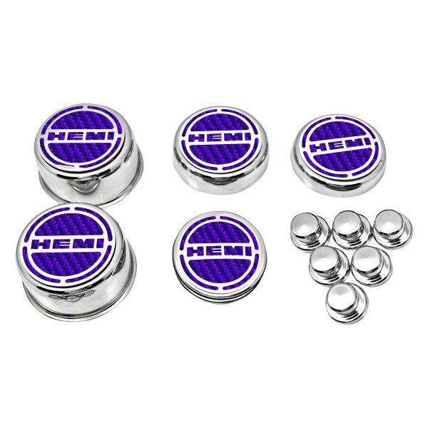 Convenient Way to Freshen up the Engine. Add more personal touches to your Dodge Charger’s engine with these Purple Carbon Fiber Deluxe Engine Caps with HEMI Logo. These accessories replace your vehicle’s boring stock caps and give your engine a more regal touch.
