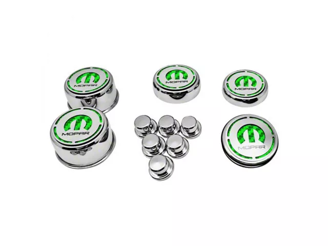Offers a More Outstanding Style. Transform your car’s dull and plain factory caps into head-turners by letting them wear these Deluxe Engine Caps with MOPAR Logo in Green Carbon Fiber. With these accessories, your factory caps will be able to sport a more outstanding style. Thanks to these caps’ sleek chrome coating and green carbon fiber vinyl patterned MOPAR logo, you’ll be able to liven up your car’s boring underhood area.