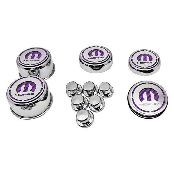 Application. These Deluxe Engine Caps with MOPAR Logo in Purple Carbon Fiber are made to fit 2012-2023 6.4L Dodge Charger HEMI models.