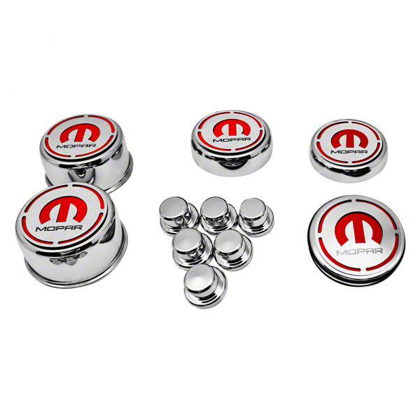 Provides a More Impressive Look. If you want to make your car’s underhood look less boring, then start replacing or covering its factory engine caps with these Deluxe Engine Caps with MOPAR Logo in Red Carbon Fiber. These caps add a more impressive look to your engine bay area with their red carbon fiber vinyl MOPAR logo and chrome-like appeal. Without a doubt, popping your hood open, your Dodge will draw the attention of every onlooker with these deluxe engine caps installed.