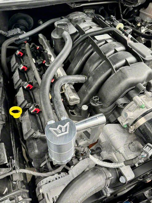 Engine Protection Upgrade. The Oil Catch Can is designed to help reduce blow-by buildup and improve long-term engine efficiency. Built for durability and precision, it provides superior oil separation while maintaining a clean intake system. This Oil Catch Can fits 2006-2023 V8 HEMI Dodge Charger models.