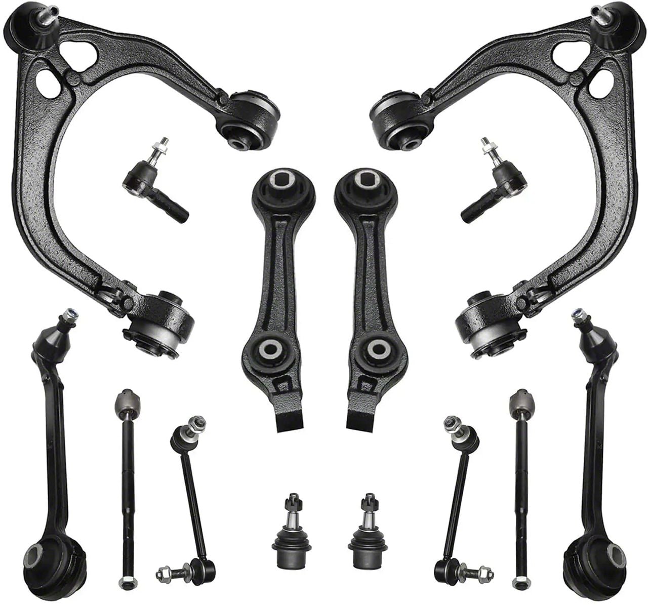 Robust and Reliable Design. Constructed with high-grade materials, the control arms, sway bar links, and tie rods offer superior strength and durability. These parts resist wear and tear under harsh driving conditions, ensuring reliability and longevity.