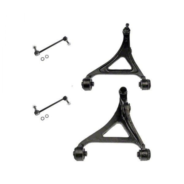 Complete Suspension Kit. The Front Lower Control Arms with Ball Joints and Sway Bar Links suspension kit provides a comprehensive solution for restoring front suspension performance. It enhances road handling and steering response by replacing worn components in a coordinated set, ensuring balanced and reliable operation.