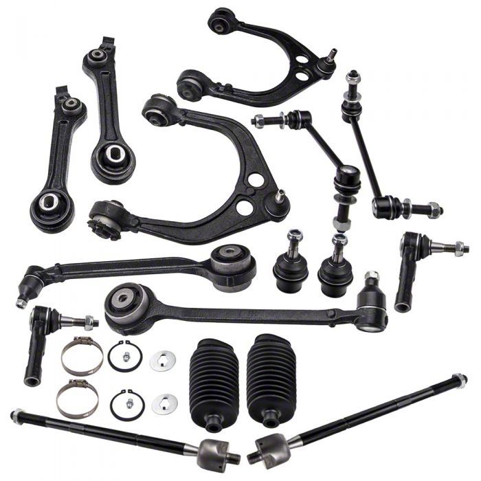 Complete Suspension Upgrade. The Front Suspension Kit is a 16-piece package engineered to restore and enhance the performance of your 2015 to 2019 RWD 6.2L HEMI Charger. Featuring pre-assembled upper and lower control arms with ball joints, this kit improves steering response, wheel travel, and suspension geometry while eliminating common issues like factory ball joint bind. Perfect for high-performance and lifted applications, it delivers smooth handling and precise alignment.