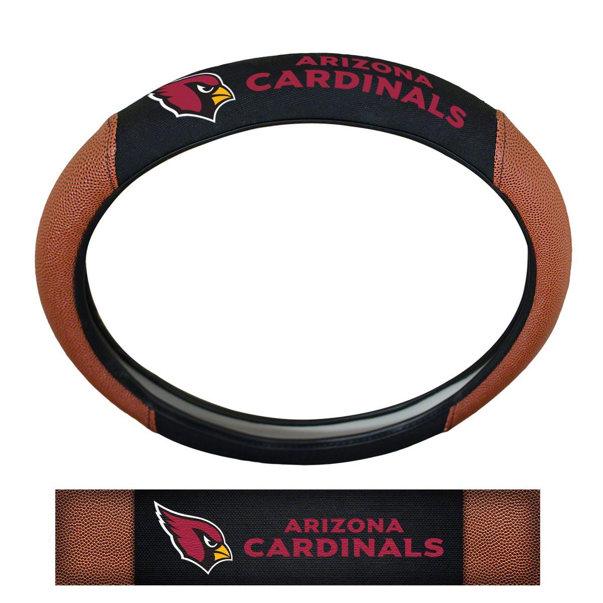 Grip Steering Wheel Cover with Arizona Cardinals Logo; Tan and Black (Universal; Some Adaptation May Be Required)