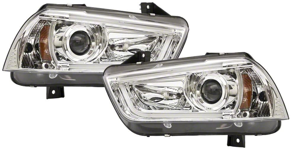 Application. This pair of Halo Projector Headlights; Chrome Housing; Clear Lens is designed to fit all 2011 to 2014 Charger with Factory Halogen Headlights models.