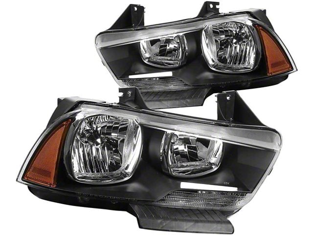 Application. Headlights with Amber Corners; Black Housing; Clear Lens is designed for the 2011-2014 Dodge Charger with Halogen Headlights.