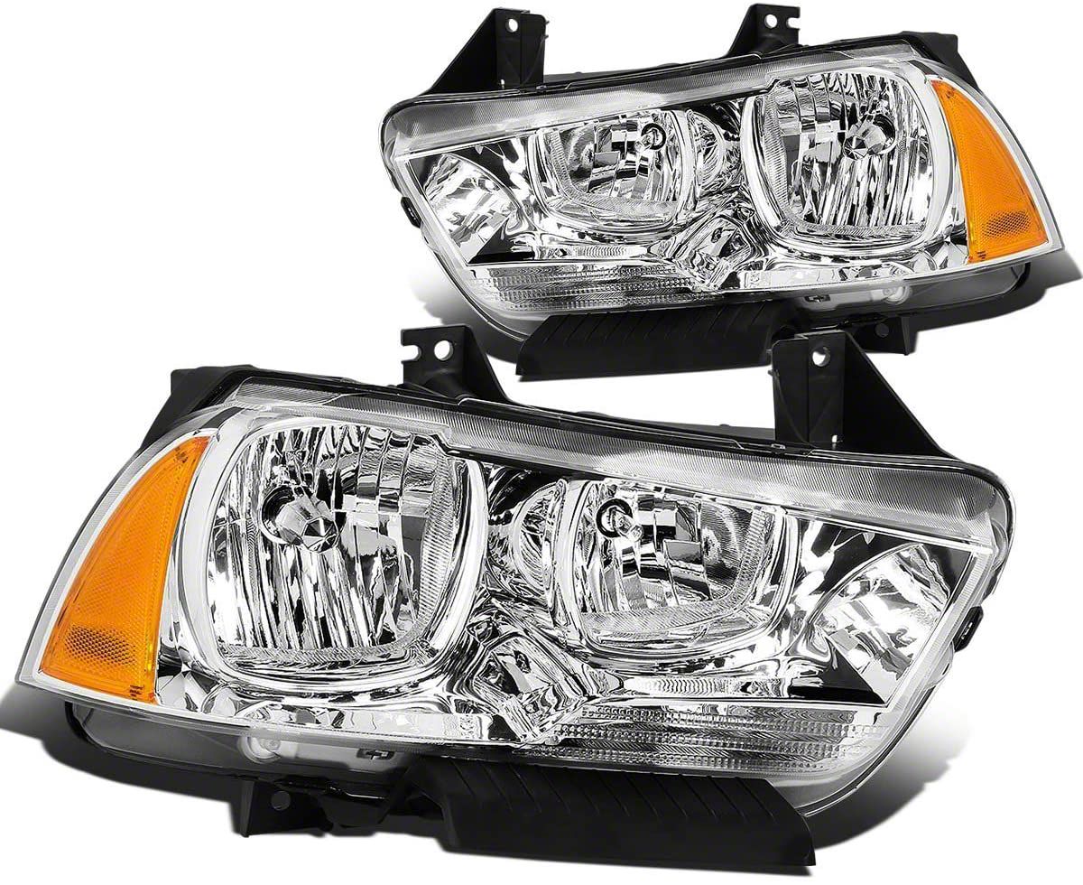 Application. Headlights with Amber Corners; Chrome Housing; Clear Lens is designed for the 2011-2014 Dodge Charger with Halogen Headlights.