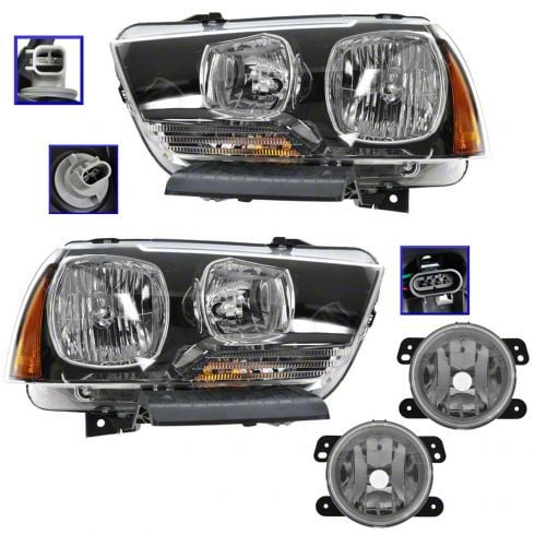 Enhanced Visibility and Style. The Headlights and Fog Light Set, designed for Charger models, offers an optimal balance of style and safety. Featuring halogen lights housed in a matte black finish with transparent clear lenses, this set provides superior illumination while enhancing the vehicle's aesthetics. As a direct replacement for the stock lighting, this set includes test bulbs, ensuring compatibility and ease of installation. Fully compliant with DOT, SAE, and FMVSS standards, this lighting set not only meets but exceeds the necessary regulations for automotive lighting, ensuring your vehicle remains safe and legal on the road.