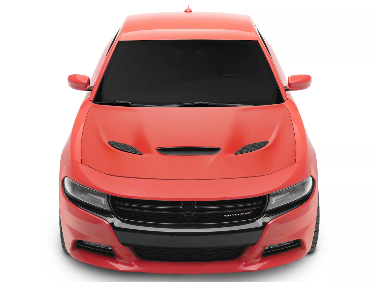 Improves Style and Airflow. Let your Charger exhibit a sportier look by installing this Unpainted Hellcat Style Hood with Air Vent Scoop. This hood is crafted with an aggressive profile that matches your car’s high-performance drives. Furthermore, this hood comes with an air vent scoop, which helps improve air flow and engine cooling.