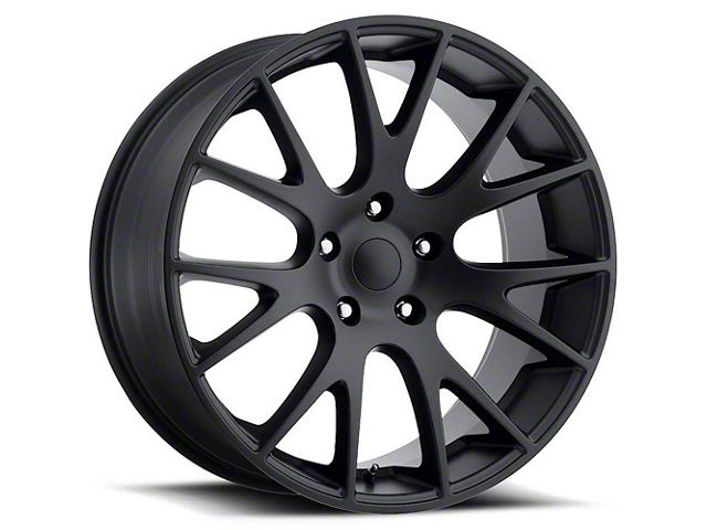 Hellcat Style Satin Black Wheel; 22x9. The Hellcat Style Satin Black Wheel offers a striking balance of style and refinement. Its unique design accentuates the vehicle's aesthetic, while the premium construction underscores its robust nature. This wheel is a perfect choice for those seeking both elegance and a strong visual statement.