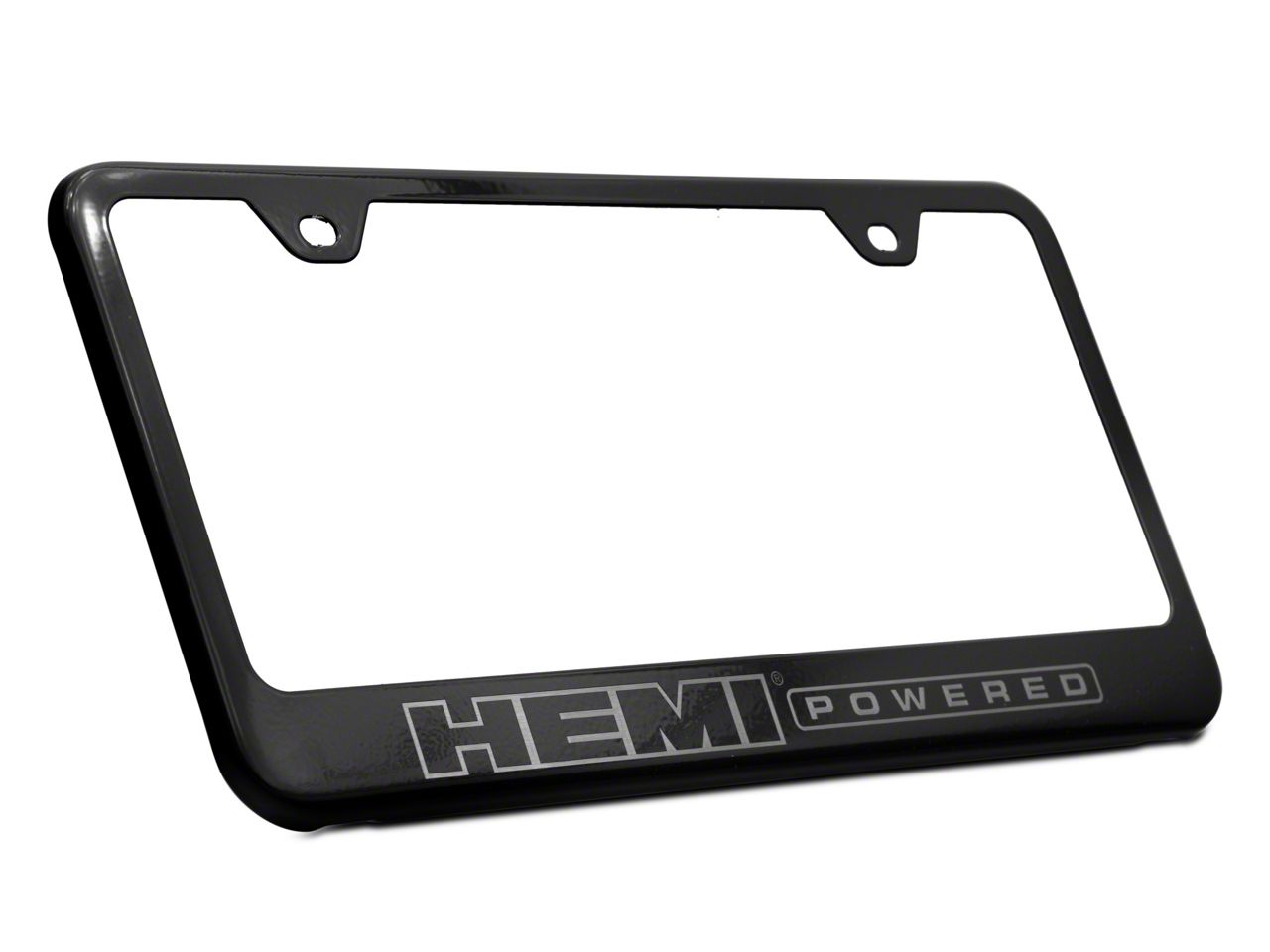 HEMI Powered Style Upgrade. If you’re looking to give your license plate a fresh new look, this HEMI Powered Black License Plate Frame is the way to go. This frame features an all-black color profile to add a fierce new style to your Charger's license plate area. More significantly, this component features the HEMI Powered logo in silver, giving your ride a fierce performance-inspired style.