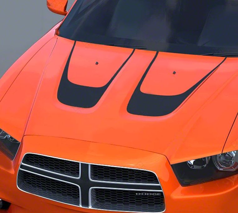 Design. The Gloss Black Hood Accent Scallop Stripes quickly give your Charger's exterior a distinctive and alluring appearance. These stripes draw emphasis to the Charger's hood and give it a distinctive look that makes it stand out from the crowd.