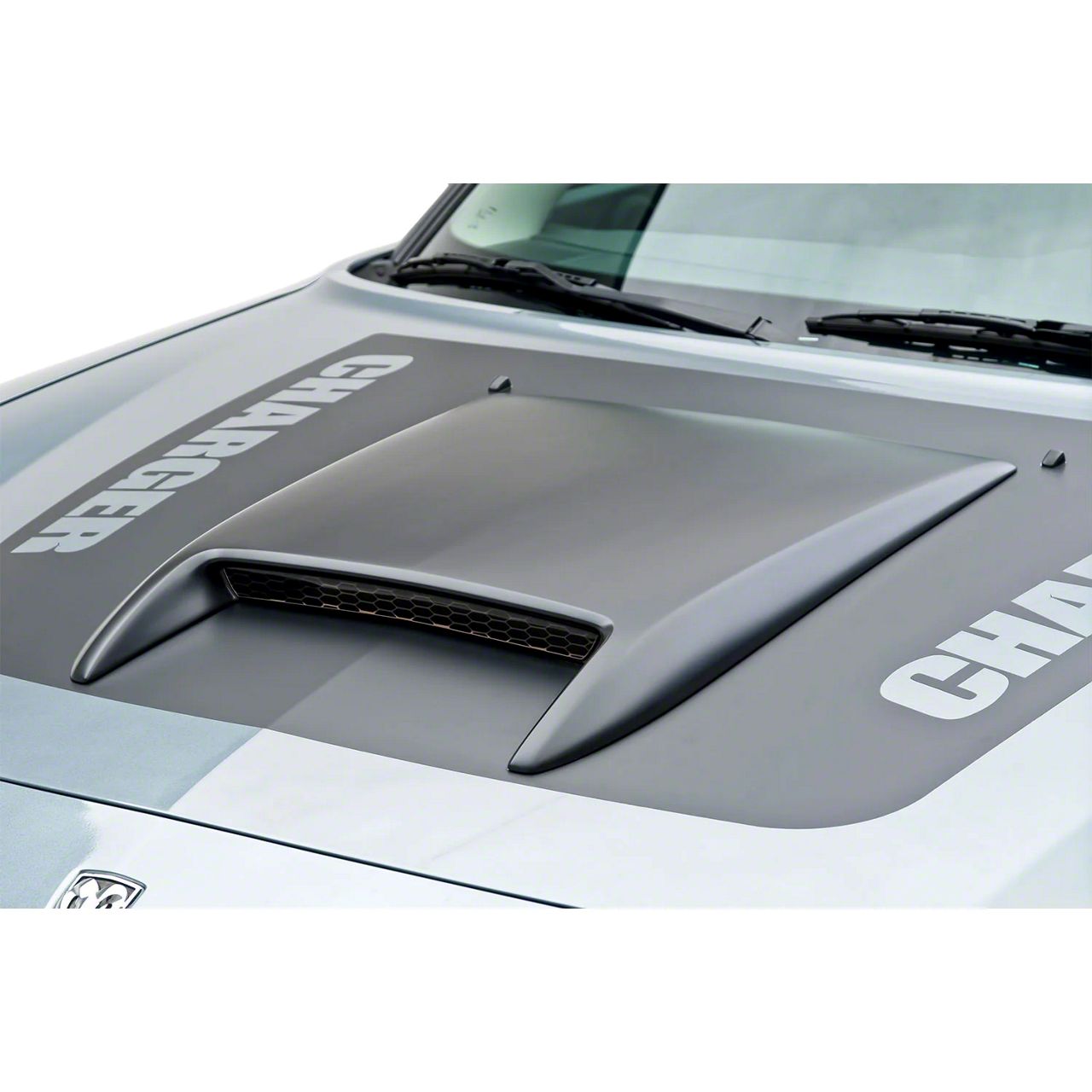 Stylish. Made for the Dodge Charger models, this stylish Hood Scoop comes unpainted and adds an aggressive look to your Charger. Built from polyurethane in the USA, this hood scoop completes your ride’s muscle car look and comes with gel screen decals as extra highlights to your hood. This hood scoop uses double-sided tape to attach to your ride’s hood and has a honeycomb mesh intake design.