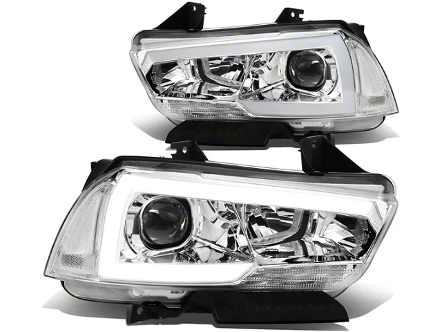 Application. LED DRL Projector Headlights with Clear Corners; Chrome Housing; Clear Lens is designed for the 2011-2014 Dodge Charger with Halogen Headlights.