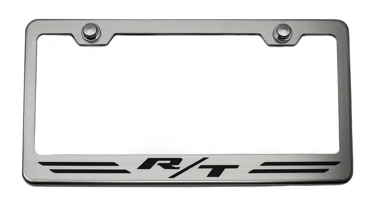 Application. The License Plate Frame with R/T Logo offers universal fitment.