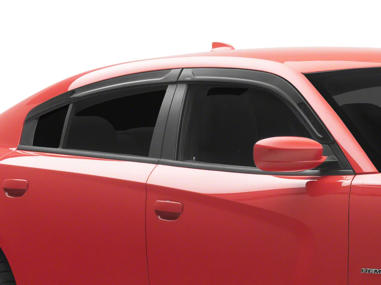 Application. The dark smoke, American Muscle Low Profile Ventvisor Window Deflectors, for the front and rear is suited for the 2011-2023 Dodge Charger. Installation Manual is included.