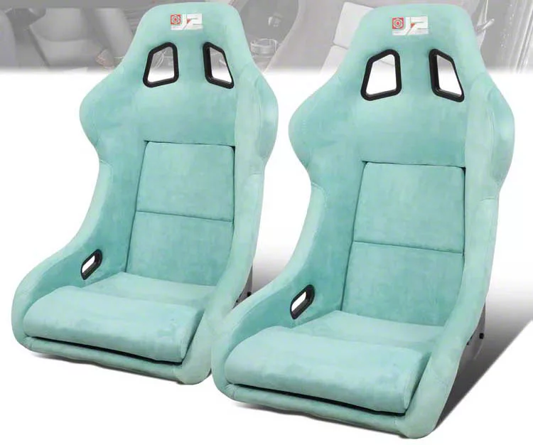 Construction and Appearance. Upholstered in luxurious lake blue microfiber suede, these seats offer a stylish upgrade to your interior while maintaining durability. The lightweight construction ensures performance without sacrificing strength, making them suitable for a variety of driving applications.