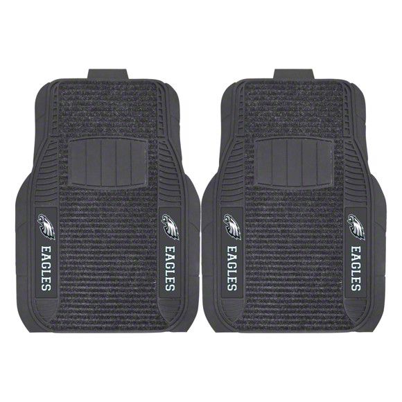 Application. These Molded Front Floor Mats with officially-licensed Philadelphia Eagles logo feature a universal design so they will fit most makes and models of vehicles. These Mats can be trimmed to fit if necessary. Sold as a set of two Mats.