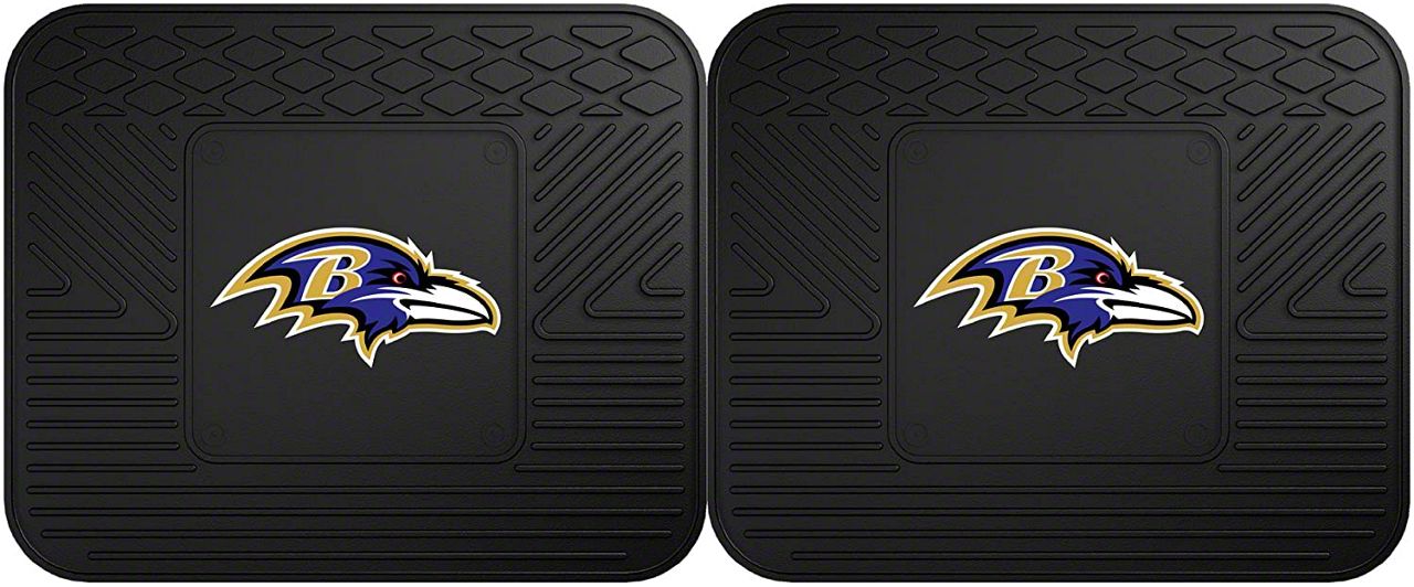 Application. These Molded Rear Floor Mats with officially-licensed Baltimore Ravens logo feature a universal design so they will fit most makes and models of vehicles. Sold as a set of two Mats.