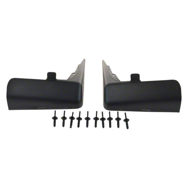 Construction and Appearance. These mud flaps are manufactured using state-of-the-art equipment, ensuring high-quality and durability. The matte black finish offers a subtle yet stylish addition to your vehicle's exterior, seamlessly blending with any color scheme. Crafted to withstand harsh road conditions, they maintain their appearance and protective qualities over time.