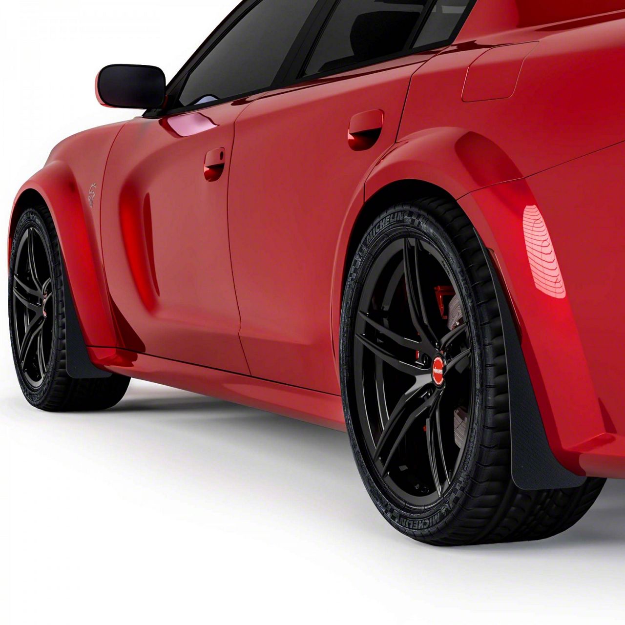 Application. These Dry Carbon Fiber Front and Rear Mud Flaps are designed for all the 2023 Dodge Charger Widebody models.