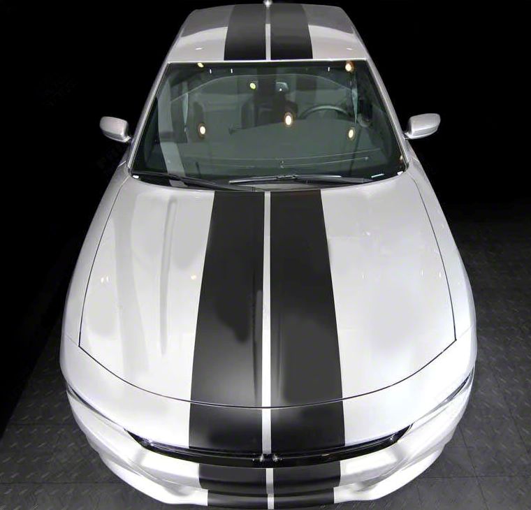 Racing Appearance. Give your Charger an incredible race-car-inspired appearance with these Over-The-Top Rally Double Stripes; Gloss Black. These double stripes are a beautiful final touch to make your machine stand out.