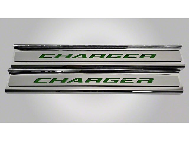 Application. These Polished Front Door Sills with Charger Lettering fit all 2015-2023 Dodge Charger Models.