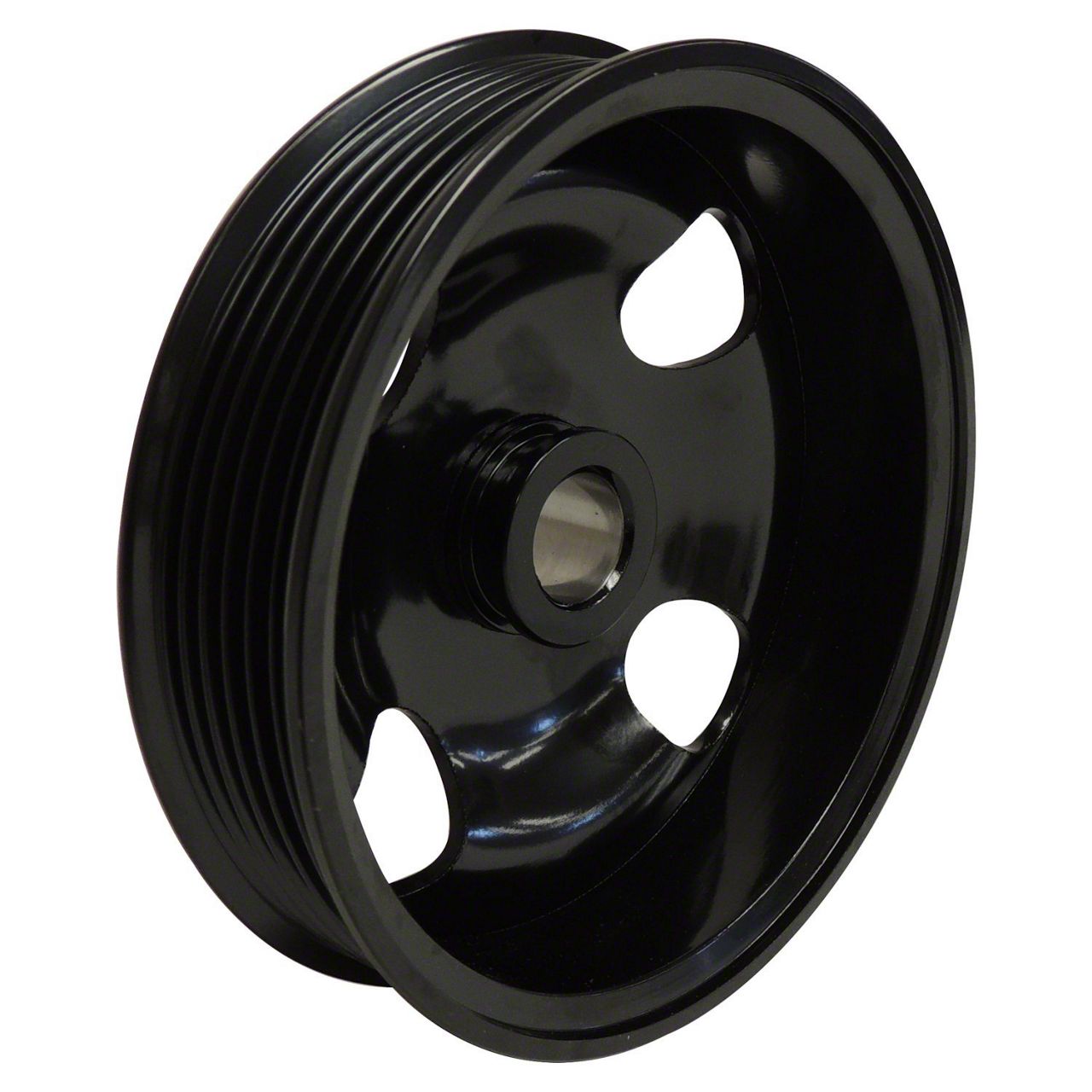 Rugged Build Quality. This pulley is crafted utilizing high-grade steel for superior durability and strength. This component is then machine-formed to exacting tolerances to provide a precise fit and reliable performance. Finally, this steering pump pulley is finished in a rugged black powder coat finish for excellent corrosion protection.