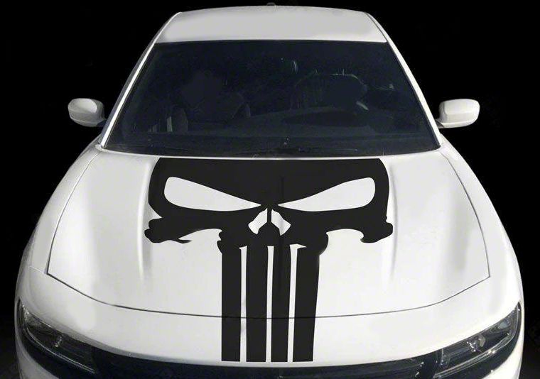 Bold and Aggressive Styling. The Punisher Style Hood Skull Decal Stripe adds an aggressive, head-turning look to your Dodge Charger. Featuring an iconic Punisher skull design, this decal enhances the muscle car's attitude while giving it a custom, high-performance appearance.