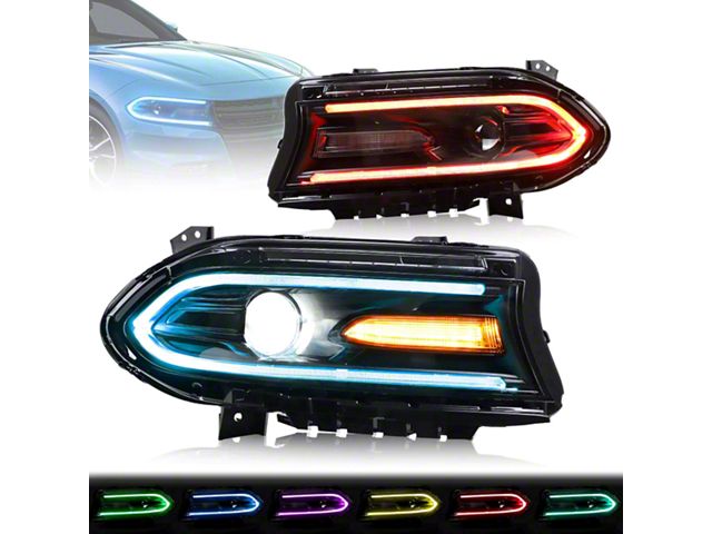 Application. The RGB Projector Headlights; Black Housing; Smoked Lens fits all 2015-2023 Dodge Charger Models with Factory Halogen Headlights.