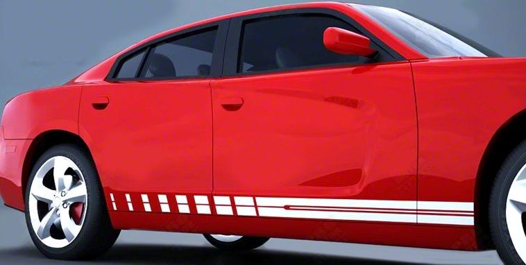 Application. Designed specifically for the 2019-2023 Dodge Charger models, the Rocker Panel Strobe Side Stripes in Gloss Black offers a perfect fit and seamless integration.