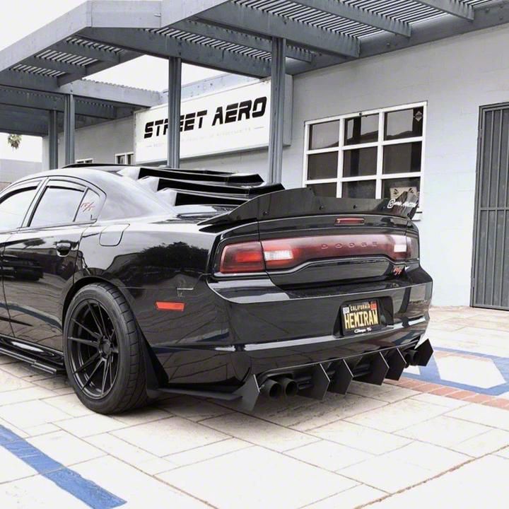 Speedster Styling. Tear the track and bring out the speed demon in your Charger with this RT Rear Diffuser. Expertly crafted and precision CNC-machined for bold lines and aerodynamic effect, it adds a stronger vibe to your vehicle as well as complete the empty look of the tail end to give your ride a bolder appearance from all angles.