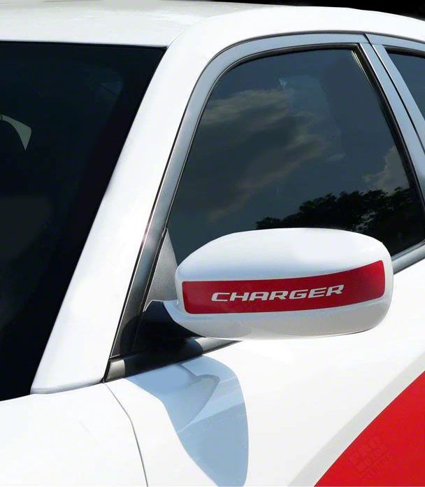 Bold Mirror Detailing. The Side Mirror Accent Stripes deliver a sleek and custom look that instantly enhances the styling of your vehicle’s side profile. Designed to fit 2015–2018 Dodge Charger models, these glossy red decals provide a pop of color and allow for optional custom lettering for added personalization. Their pre-cut design makes them a stylish and functional addition to any build seeking subtle visual flair.