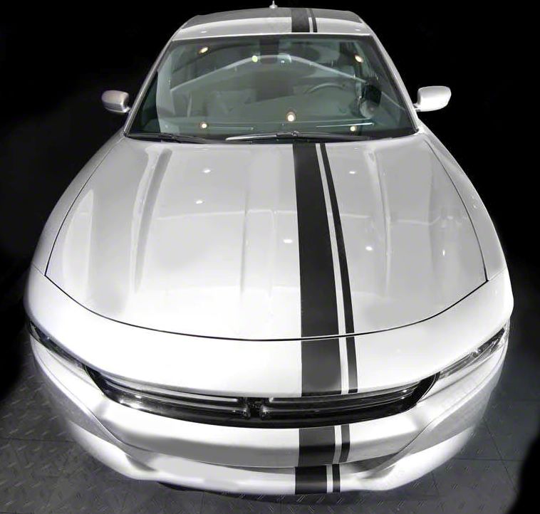 Drill-Less Tape-On Attachment. Featuring a sleek gloss black finish/color, these Side Offset Over-The-Top Stripes add a touch of style and aggression to your Charger's exterior. The drill-less tape-on installation style eliminates the need for drilling or any permanent modifications to your vehicle. Simply apply the stripes using the provided adhesive for a hassle-free upgrade.