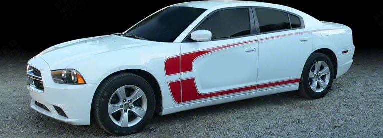 Construction and Appearance. Made from high-quality vinyl, these accent stripes are crafted for long-lasting durability and resistance to the elements. The vibrant gloss black finish provides a polished, eye-catching appearance that complements any Charger color.