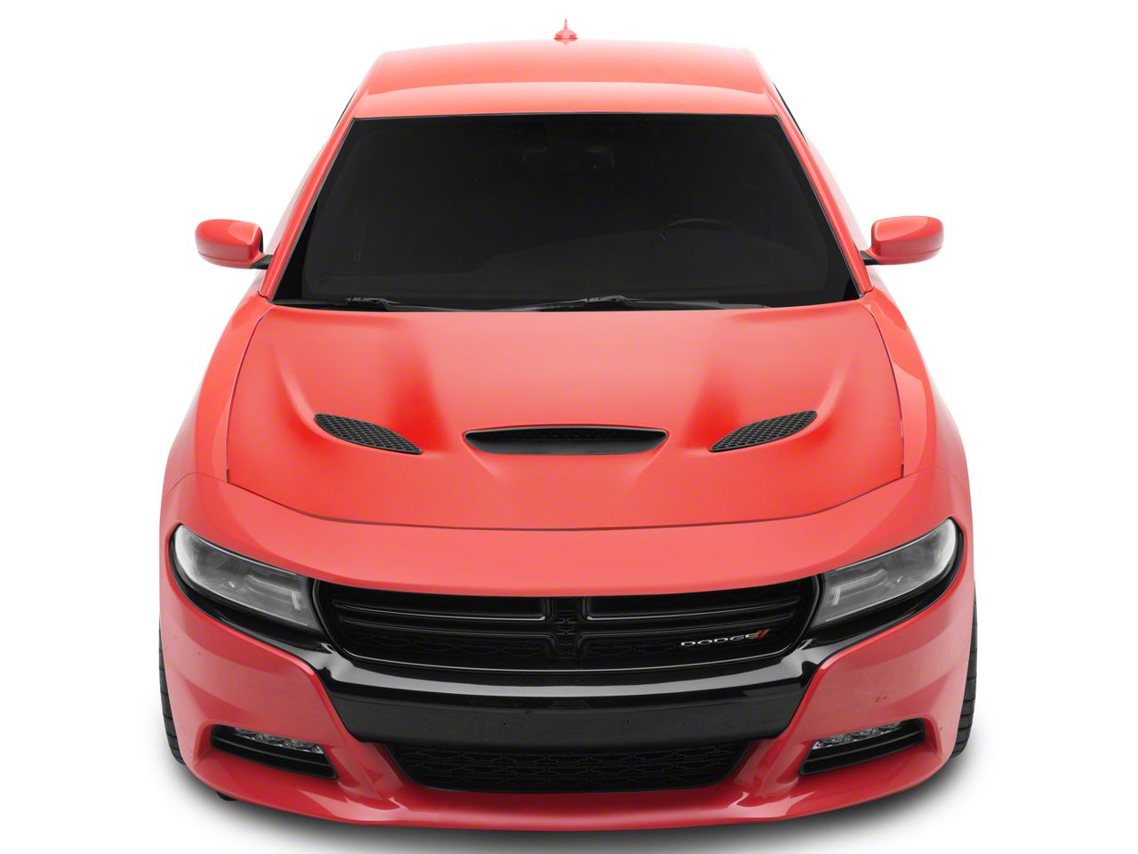 Application. The SRT Performance Style Front Air Vented Hood fits 2015-2023 Charger models.