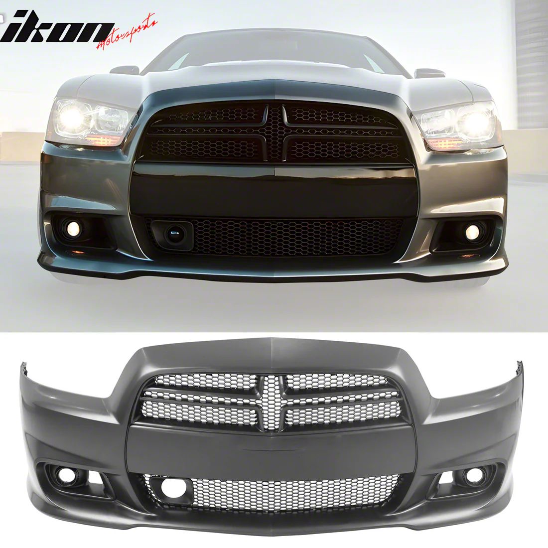 Construction and Appearance. Crafted from durable polypropylene for impact resistance, the bumper cover also includes an ABS plastic upper grille for a lightweight yet tough structure. The unpainted surface allows for seamless integration into custom paint jobs, while the molded SRT8 styling provides a factory-aggressive look right out of the box.