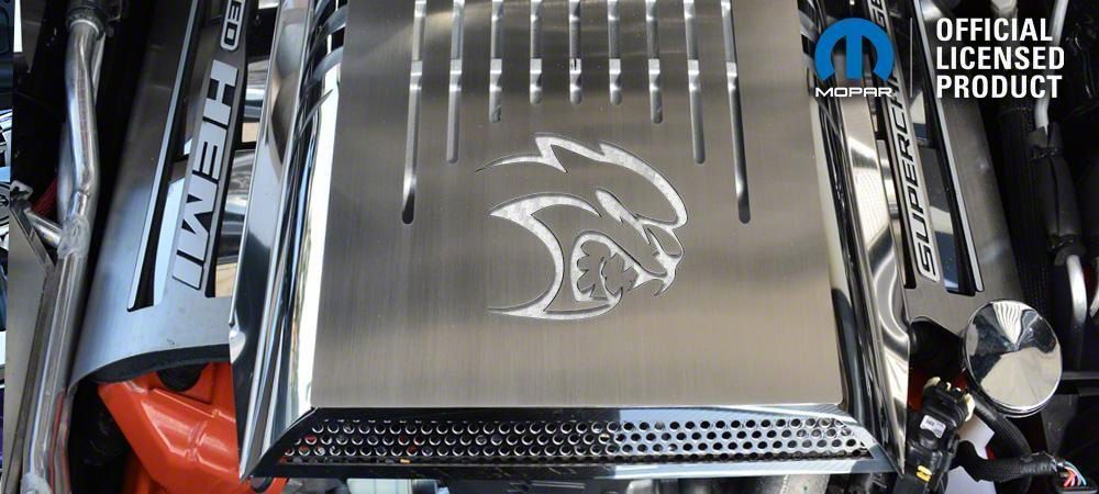Licensed Product. The Stainless Steel HELLCAT Logo Plenum/Supercharger Engine Cover is officially licensed by Mopar, and a HELLCAT logo is printed in high quality onto the cover.