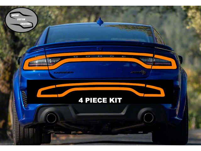 Application. The Tail Light Tint Overlay fits 2015-2023 Dodge Charger models. With their unique Hazard Orange finish and off-road-only design, these overlays provide an eye-catching enhancement, helping your vehicle stand out with a custom and daring aesthetic.