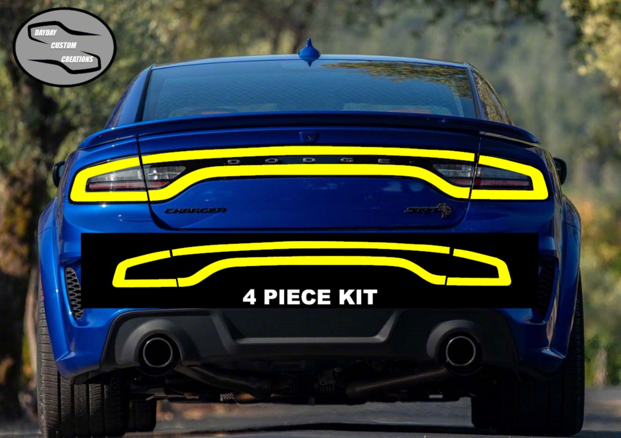 Vibrant and Unique Tail Light Styling. The Tail Light Tint Overlay in yellow offers a distinctive and bold aesthetic for your Charger's rear end. This overlay not only enhances the appearance but also provides added protection against minor scratches and UV damage.