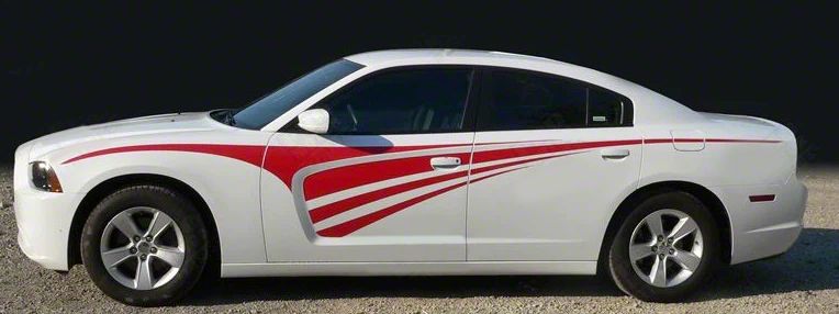 Application. This Tribal Rally Racing Side Stripes (Gloss Black) fits 2011-2014 Dodge Charger models.