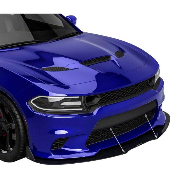 Advanced Aerodynamic Enhancement. The front model Splitter, boasting a V3R design and a glossy dry carbon fiber vinyl finish, is a premium upgrade for the Charger Scat Pack and SRT models, specifically excluding widebody versions. This splitter is engineered to enhance aerodynamics, significantly improving cornering speeds and high-speed stability. Its design is not only focused on improving performance but also on elevating the vehicle's aesthetic appeal. Made in the USA and precision machine cut, this splitter includes support rods for increased durability and resilience. The use of high-quality materials ensures longevity and resistance to wear, making it an excellent investment for drivers seeking both style and functionality.
