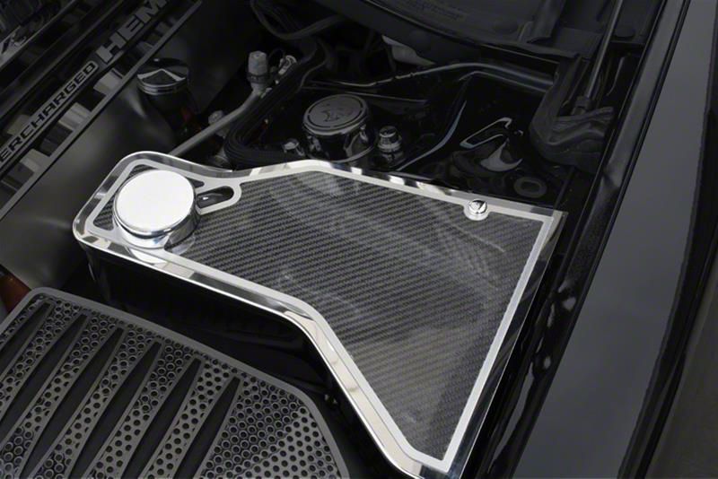 Durable. The Water Tank Trim Plate is crafted from carbon fiber, which offers exceptional quality and durability. Carbon fiber is known for its lightweight properties and resistance to corrosion, making it an great fabric for vehicle applications. With the Carbon Fiber Trim Plate, you'll elevate your Charger's style.