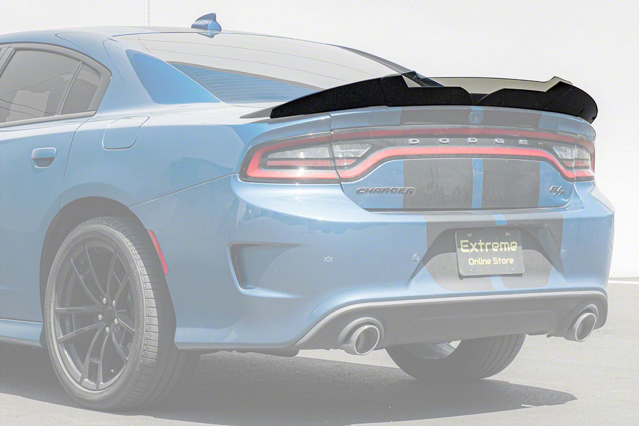 Aerodynamic Wickerbill Spoiler for Enhanced Performance. Upgrade the look and aerodynamic capabilities of your 2015-2023 Dodge Charger with this Wickerbill Spoiler. The smoke-tinted finish and Performance Track V2 style design provide a sleek and aggressive appearance, while improving high-speed stability and handling for an enhanced driving experience.