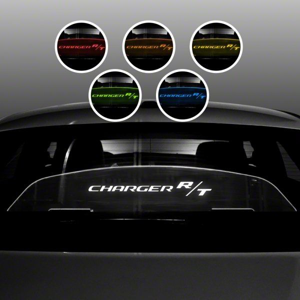 Stylish Light Display. Set your Dodge Charger apart from the rest of the Chargers on the roads and tracks with this flashy Wind Deflector with Charger R/T Script in White. This illuminated glass glows like a fiber optic display, showing the laser-engraved Charger R/T Script log in bright white. This glow plate is incredibly stylish and reinforces the visibility of your car during nighttime drives.