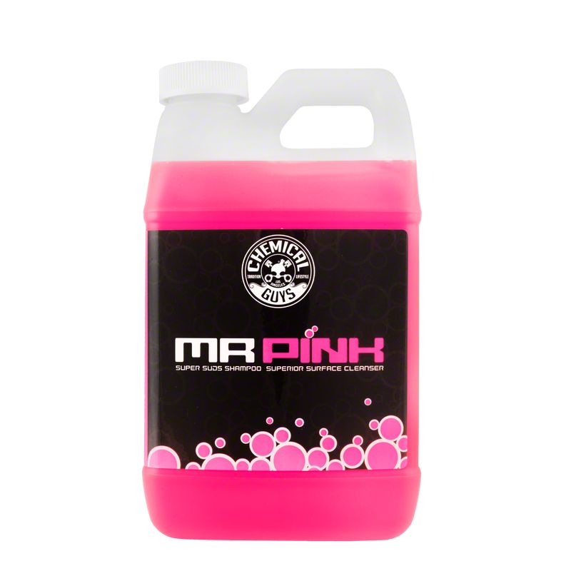 Clean and Shiny. Introducing Chemical Guys Mr. Pink Super Suds, the ultimate car wash shampoo in a generous 64-ounce bottle. This superior surface cleanser is designed to make your car shine like never before. Thanks to its advanced foaming technology, Mr. Pink creates a thick, luxurious lather that effortlessly lifts away dirt, grime, and debris from your vehicle's surface. Whether you're dealing with road dust, mud, or environmental contaminants, Mr. Pink's powerful formula ensures a thorough clean.