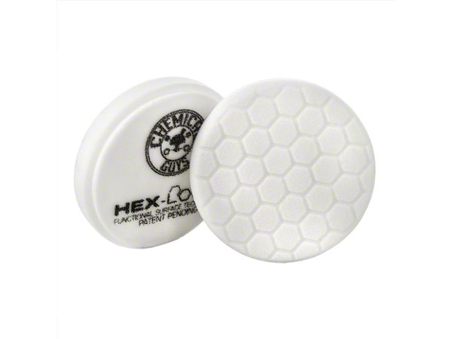 Enhanced Exterior Shine. Embrace superior car maintenance with the Chemical Guys White Hex-Logic Light-Medium Polishing Pad; 4-Inch, specifically designed for high-quality and efficient detailing. This pad utilizes Hex-Logic's technology, which promotes an evenly distributed point of contact to deliver a flawless polish without causing heat build-up or excess wear on your paintwork.