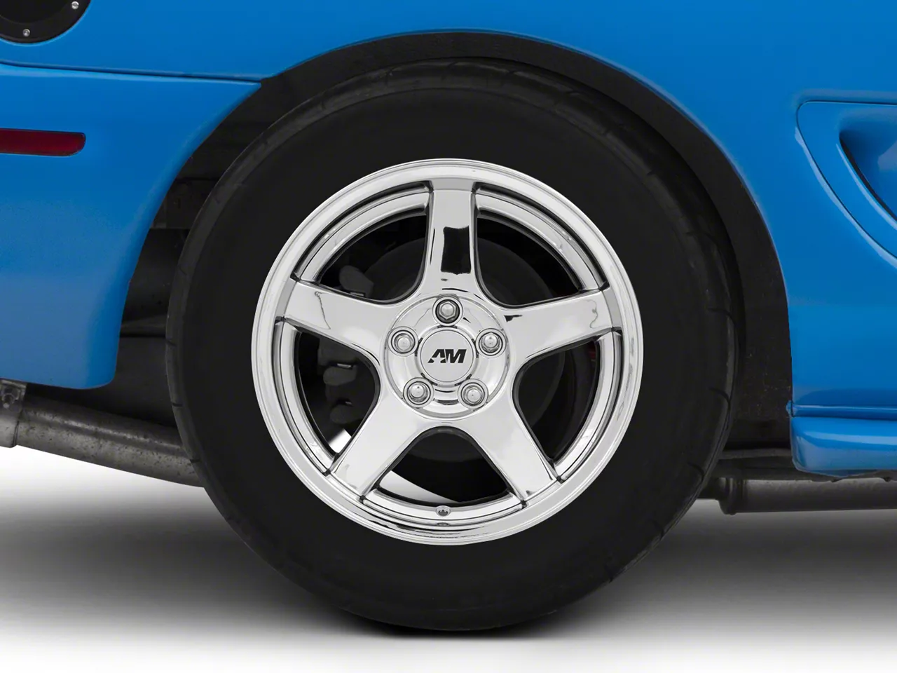 Application: This American Muscle Wheels Deep Dish 2003 Cobra Style Chrome Wheel; Rear Only; 17x10.5, with a backspace of 6.813 Inch, 173.1mm and bolt pattern of 5 x 114.3mm (5 x 4.5-Inch), ensures precise alignment and superior driving stability. It's designed to fit 2094-2098 Mustang models. Sold individually.
